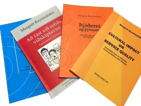 Margrét Reynisdóttir, the founder of Gerum betur, was the first to write books on service quality in Iceland as well as 6 training videos. She has co-authored the educational material for the popular course entitled Skills in the Hospitality Sector, taught at the Vocational Training Centre. Over the years, Margrét has written numerous articles on the topic of service quality.